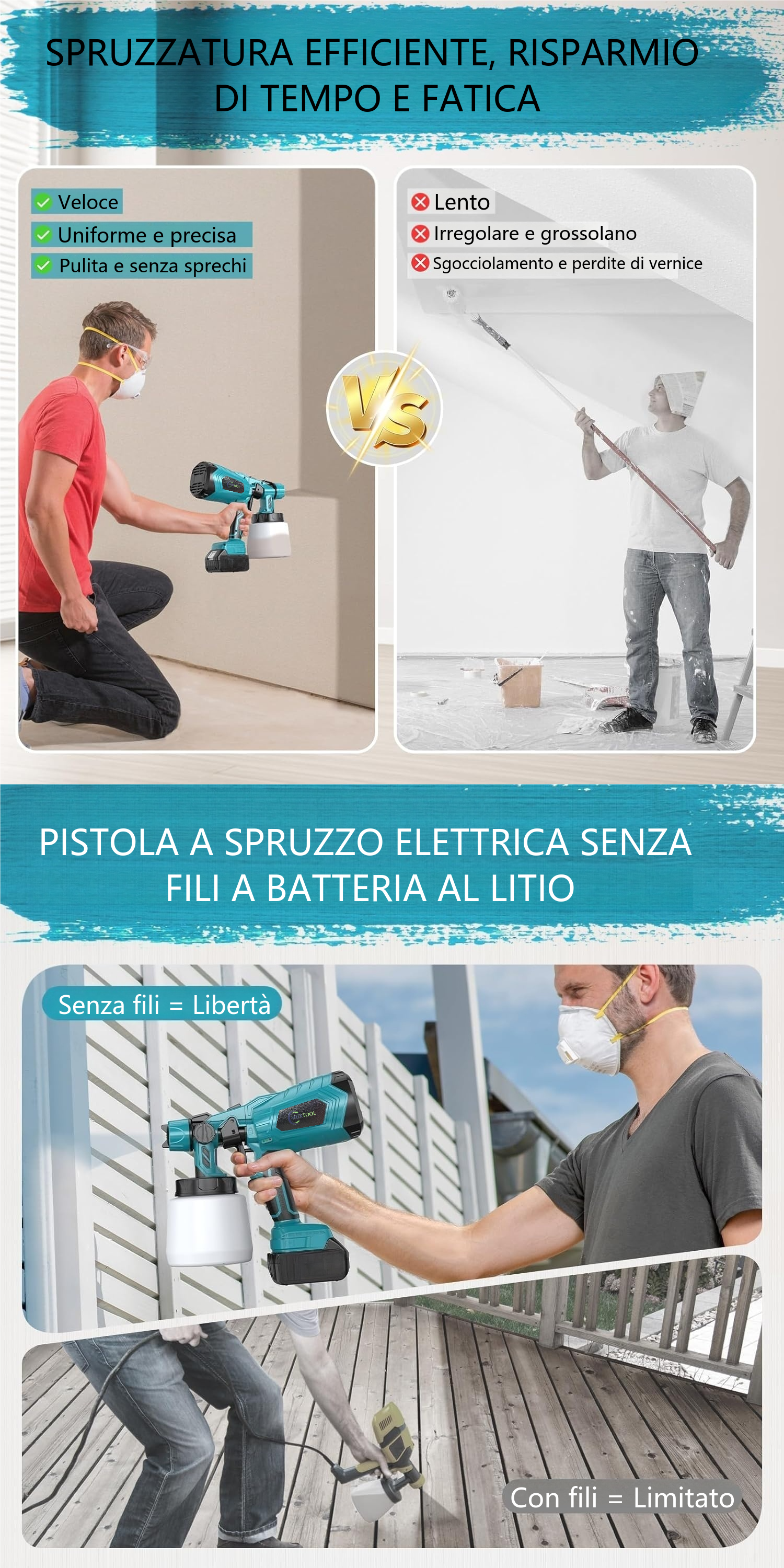 Risposta: Sì, le pistole a spruzzo senza fili sono facili da usare e perfette per i principianti.